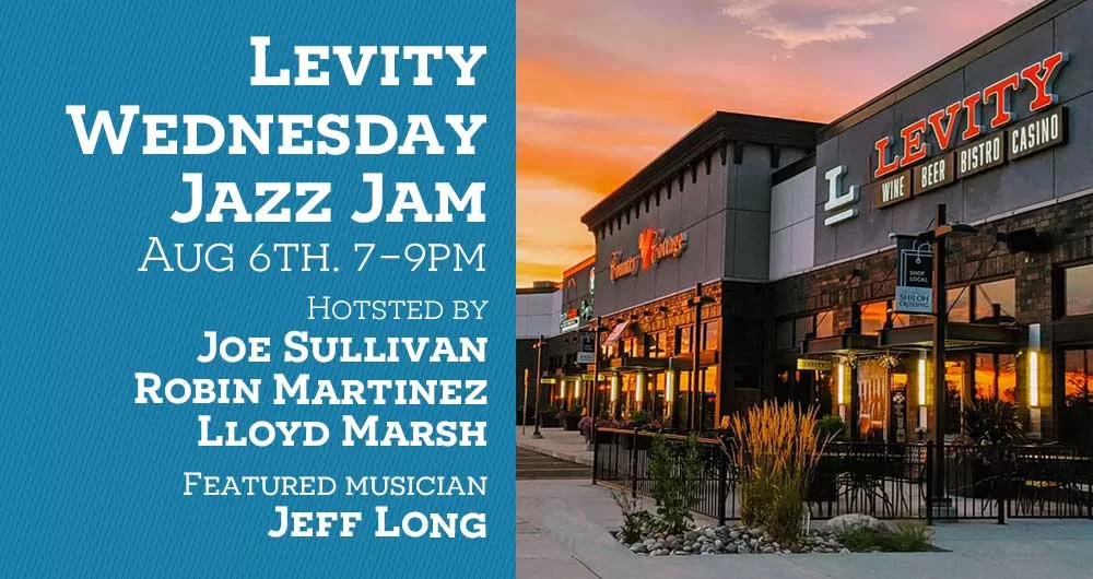 Every Wednesday, Levity features Jazz Jam starting at 7:00 p.m. It’s a Jam Session with local jazz musicians. This week the house band – Joe Sullivan on keyboard, Robin Martinez on bass, Lloyd Marsh on drums, with featured musician Jeff Long on EWI will be hosting the jam session! There are always familiar faces, but it’s open to anyone who can play. All you need is raw talent and your instrument!
