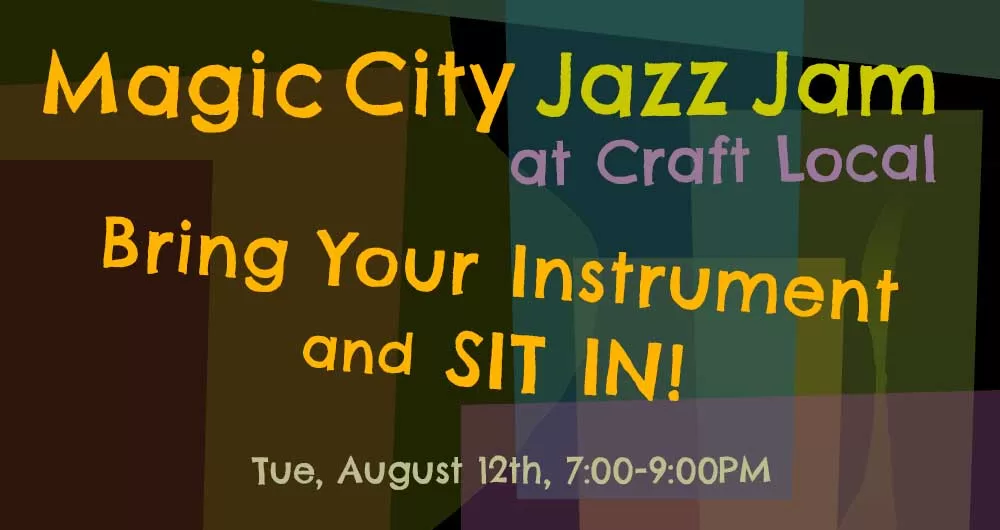 THIS TUESDAY, August 12th, Magic City Jazz Jam @ Craft Local! (7pm-9pm)
