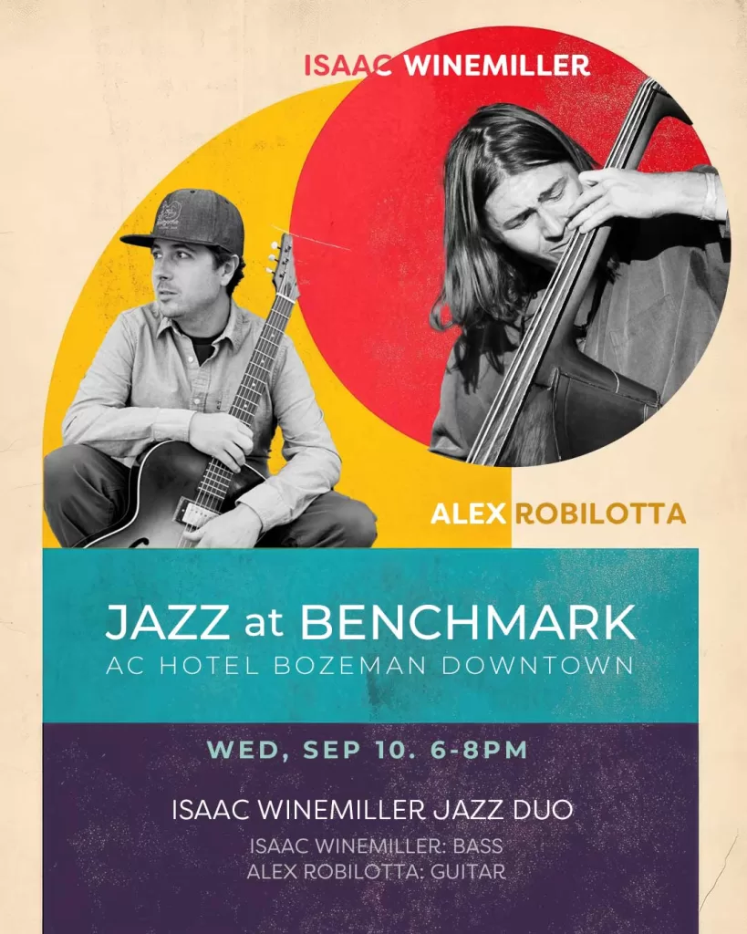 There is live music at AC Benchmark (AC Hotel by Marriott) every Wednesday. On September 10th, bassist Isaac Winemiller and guitarist Alex Robilotta will be playing from 6 to 8 PM! Please join the duo and enjoy their music, the mountain views, and cocktails!