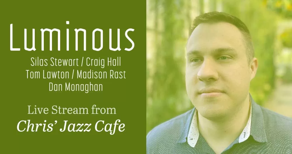 Log onto Chris’s Jazz Cafe live feed this Thursday, September 11th, at 5:30 p.m. (MST) to hear Silas Stewart on vibraphone, Craig Hall on guitar, Tom Lawton on piano, Madison Rast on bass, and Dan Monaghan on drums for two sets of jazz, including treatments of patriotic songs, from downtown Philadelphia.