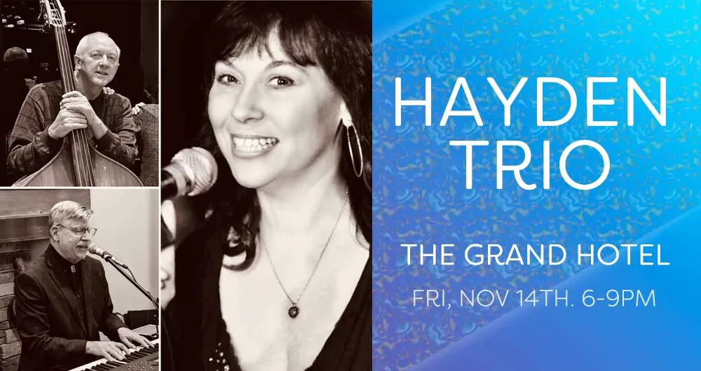 Join the Hayden Trio at the historic Grand Hotel for live music, good eats & great vibes! Feat. Elana Hayden, Joe Sullivan & Craig Hall.