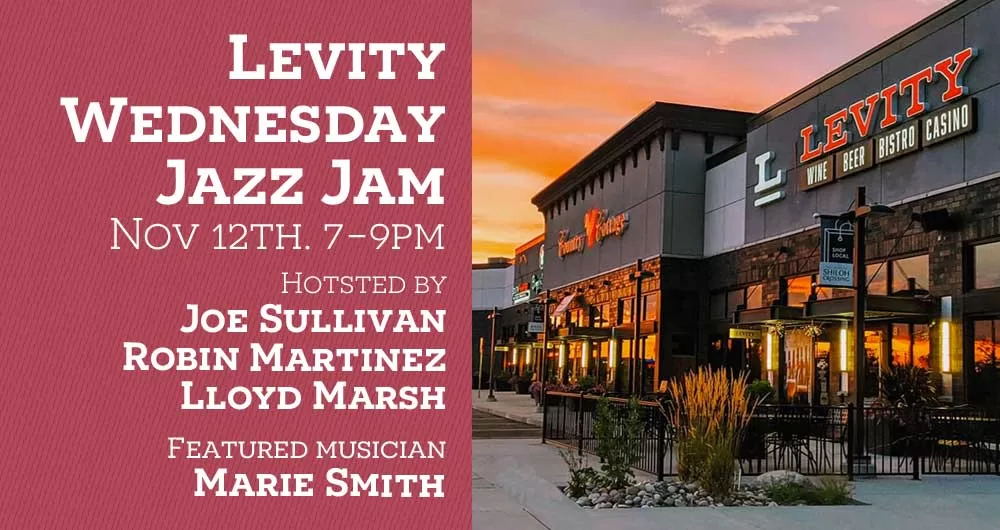 Every Wednesday, Levity features Jazz Jam starting at 7:00 p.m. It’s a Jam Session with local jazz musicians. This week, the house band – Joe Sullivan on keyboard, Robin Martinez on bass, Lloyd Marsh on drums, with guest musician Marie Smith on vocals – will be hosting the jam session! There are always familiar faces, but it’s open to anyone who can play. All you need is raw talent and your instrument!