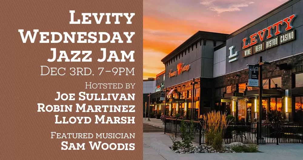 Every Wednesday, Levity features Jazz Jam starting at 7:00 p.m. It’s a Jam Session with local jazz musicians. This week, the house band – Joe Sullivan on keyboard, Robin Martinez on bass, Lloyd Marsh on drums, with guest musician Sam Woodis on saxophone – will be hosting the jam session! There are always familiar faces, but it’s open to anyone who can play. All you need is raw talent and your instrument!