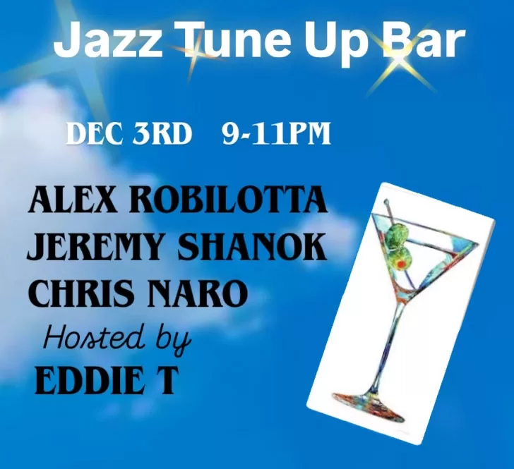 Jazz Night hosted by Eddie T. at Tune Up Bar on the first Wednesday of every month! On Wednesday, December 3rd, Eddie T. on bass, Alex Robilotta on guitar, Jeremy Shanok on keyboard, and Chris Naro on drums will be playing! Enjoy 20% off all menu items with a valid Montana ID, excluding Happy Hour Specials!
