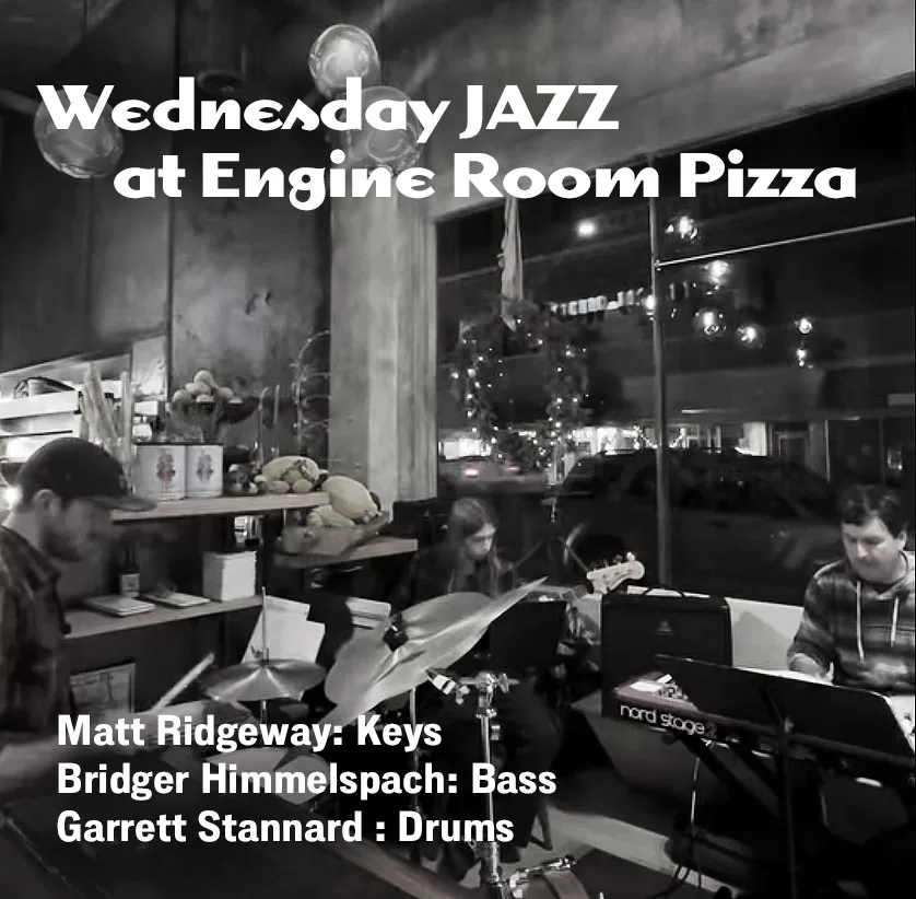 Cocktail Jazz at Engine Room Pizza in Livingston this Wednesday! Garrett Stannard on drums, Matt Ridgeway on piano, and Bridger Himmelspach on bass will be playing from 7:30 PM to 9:00 PM!