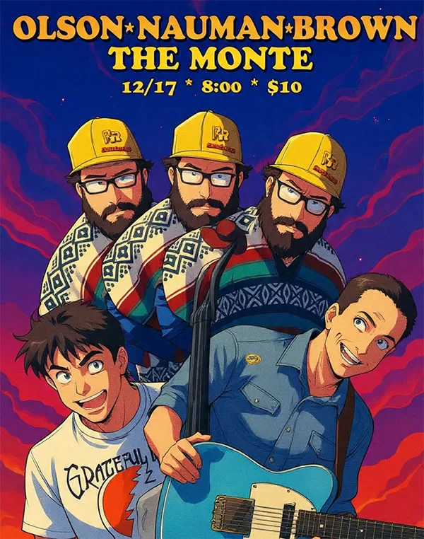 Erik Olson is back in Billings, and Erik, Alex Nauman, and Parker Brown are playing at The Monte! I don’t know what to expect with these wild talents, but it will be fantastic! Erik Olson on keys, Alex Nauman on guitar, and Parker Brown on bass. Tickets $10 at the door.