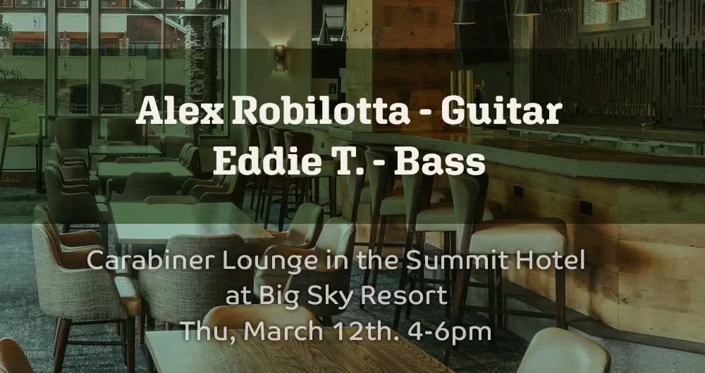 Carabiner Lounge at the Summit Hotel has live music on Thursdays for the season, 4-6 PM. Alex Robilotta on guitar and Eddie T. on bass! Perhaps this is not the ideal spot to drop by, but if you know anyone staying or living nearby the hotel, please invite them to come and enjoy the music with a spectacular view of Lone Peak in the cozy hotel lobby.