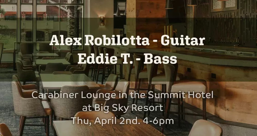 Carabiner Lounge at the Summit Hotel has live music on Thursdays for the season, 4-6 PM. Alex Robilotta on guitar and Eddie T. on bass! Perhaps this is not the ideal spot to drop by, but if you know anyone staying or living nearby the hotel, please invite them to come and enjoy the music with a spectacular view of Lone Peak in the cozy hotel lobby.