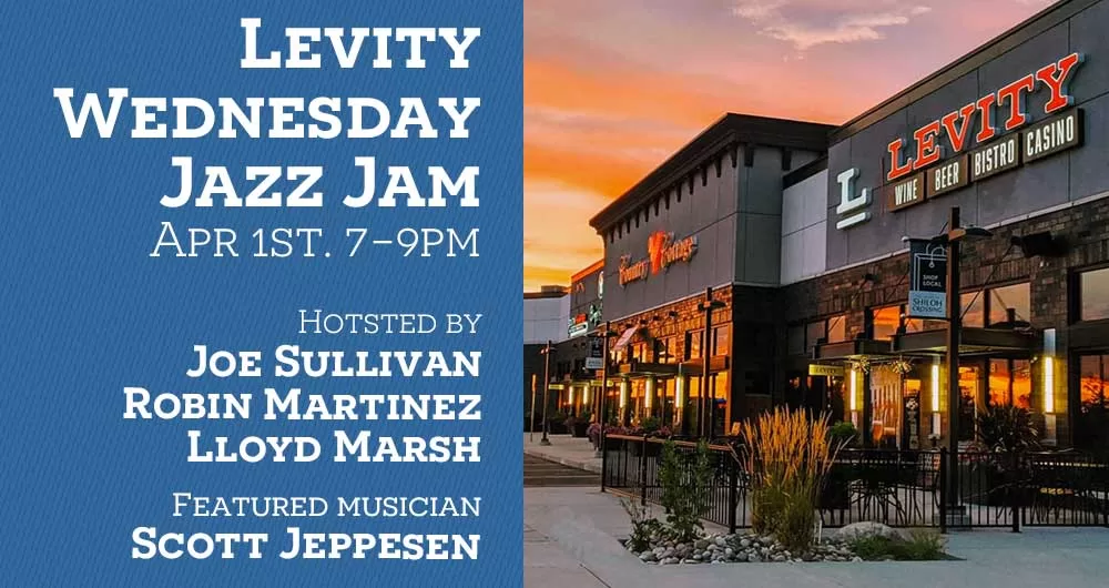 Every Wednesday, Levity features Jazz Jam starting at 7:00 p.m. It’s a Jam Session with local jazz musicians. This week, the house band – Joe Sullivan on keyboard, Robin Martinez on bass, Lloyd Marsh on drums, and a weekly featured musician, Scott Jeppesen on saxophone will be hosting the jam session! There are always familiar faces, but it’s open to anyone who can play. All you need is raw talent and your instrument!