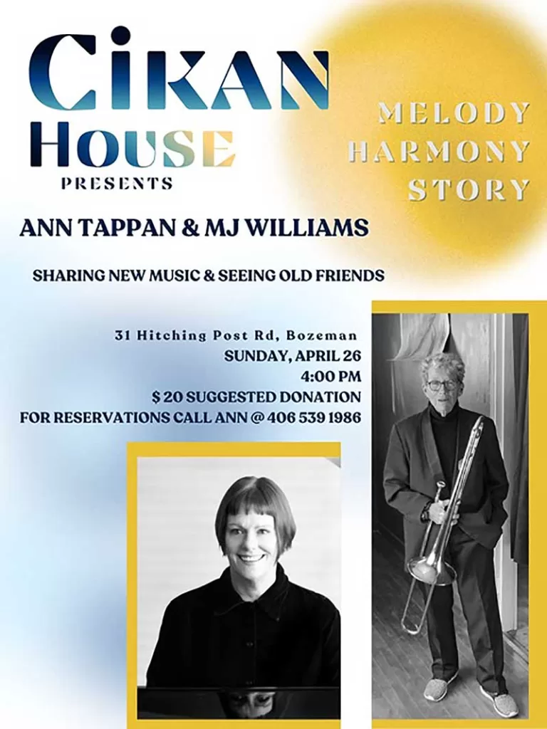 SUN, APR 26TH AT THE CIKAN HOUSE IN BOZEMAN